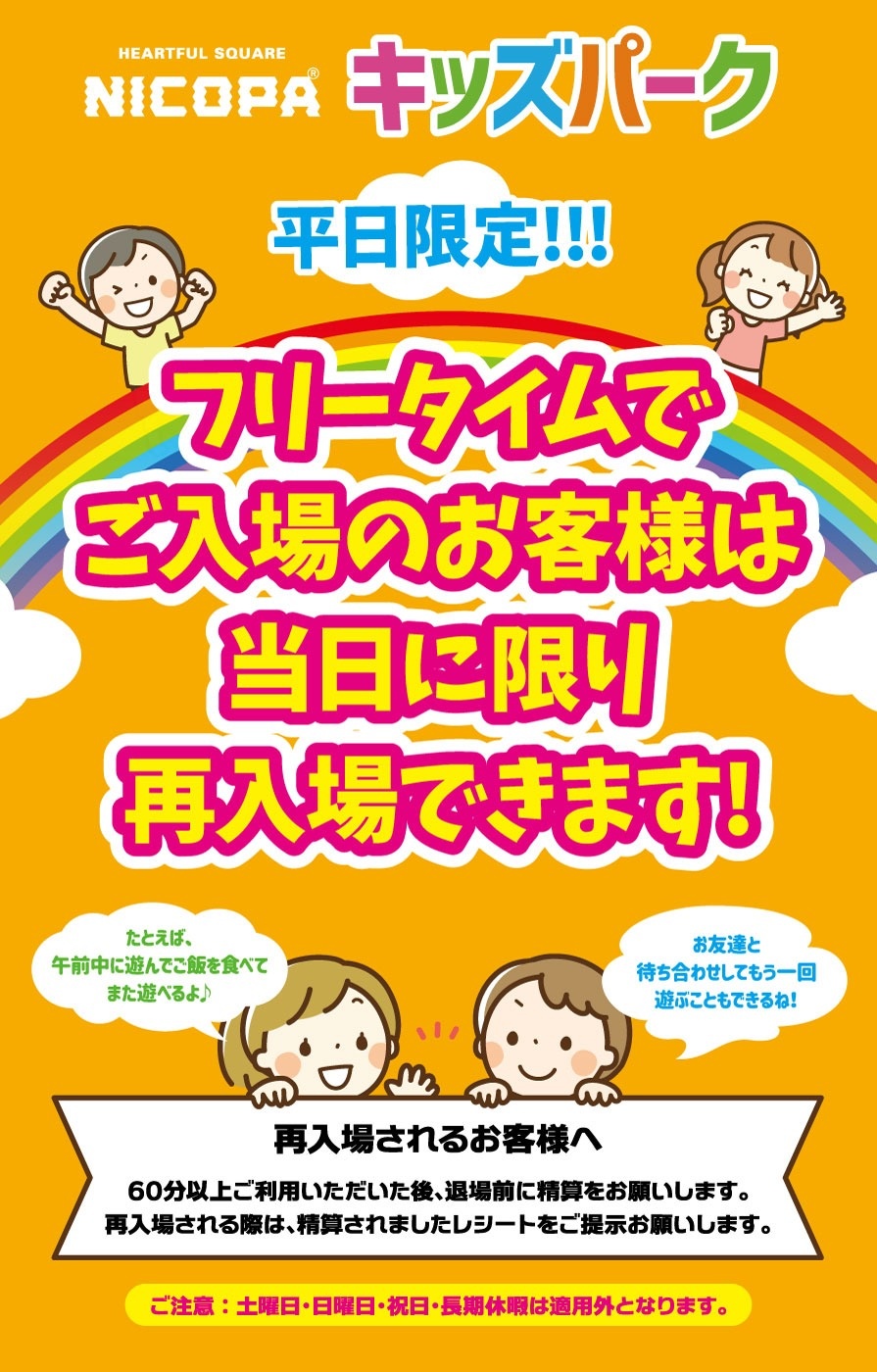 【NICOPA】キッズパーク 平日限定!! フリータイムなら再入場できます!