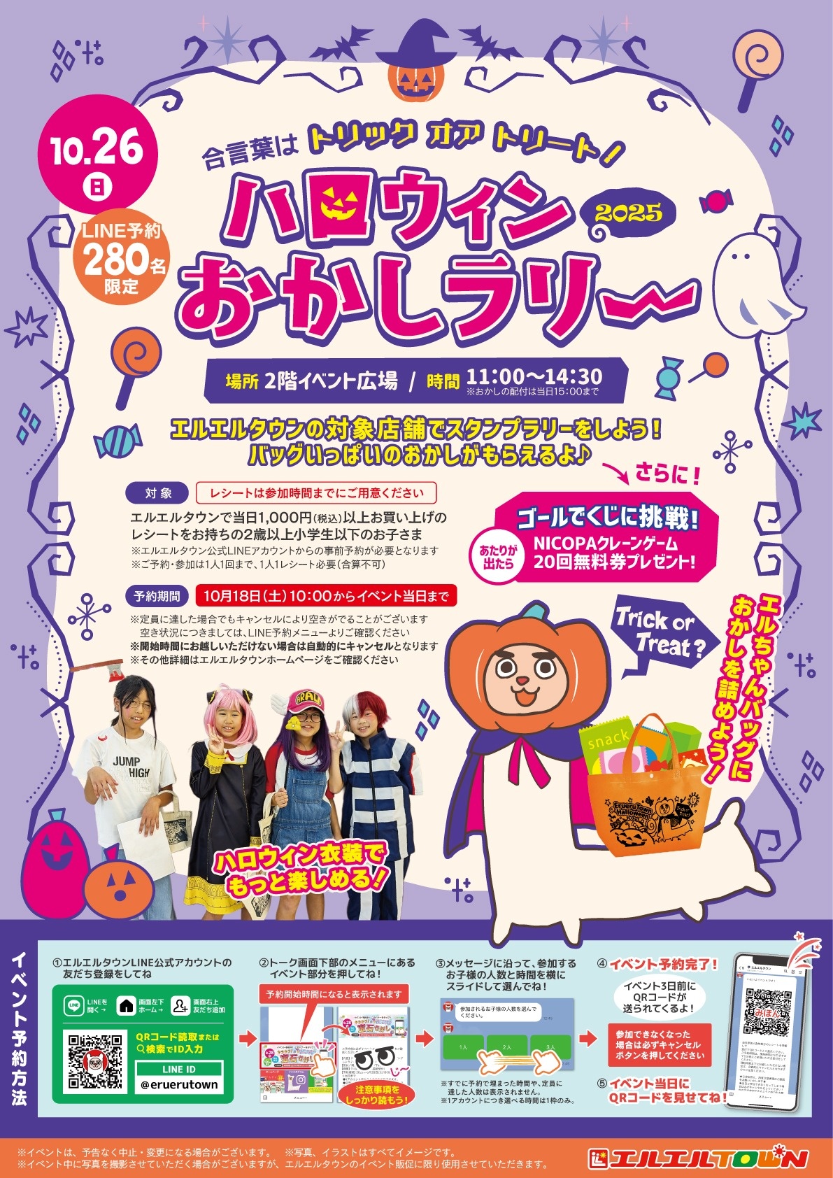 エルエルタウンで当日1,000円(税込)以上お買い上げのレシートをお持ちの2歳以上小学生以下のお子さま ※レシートは参加時間までにご用意ください |