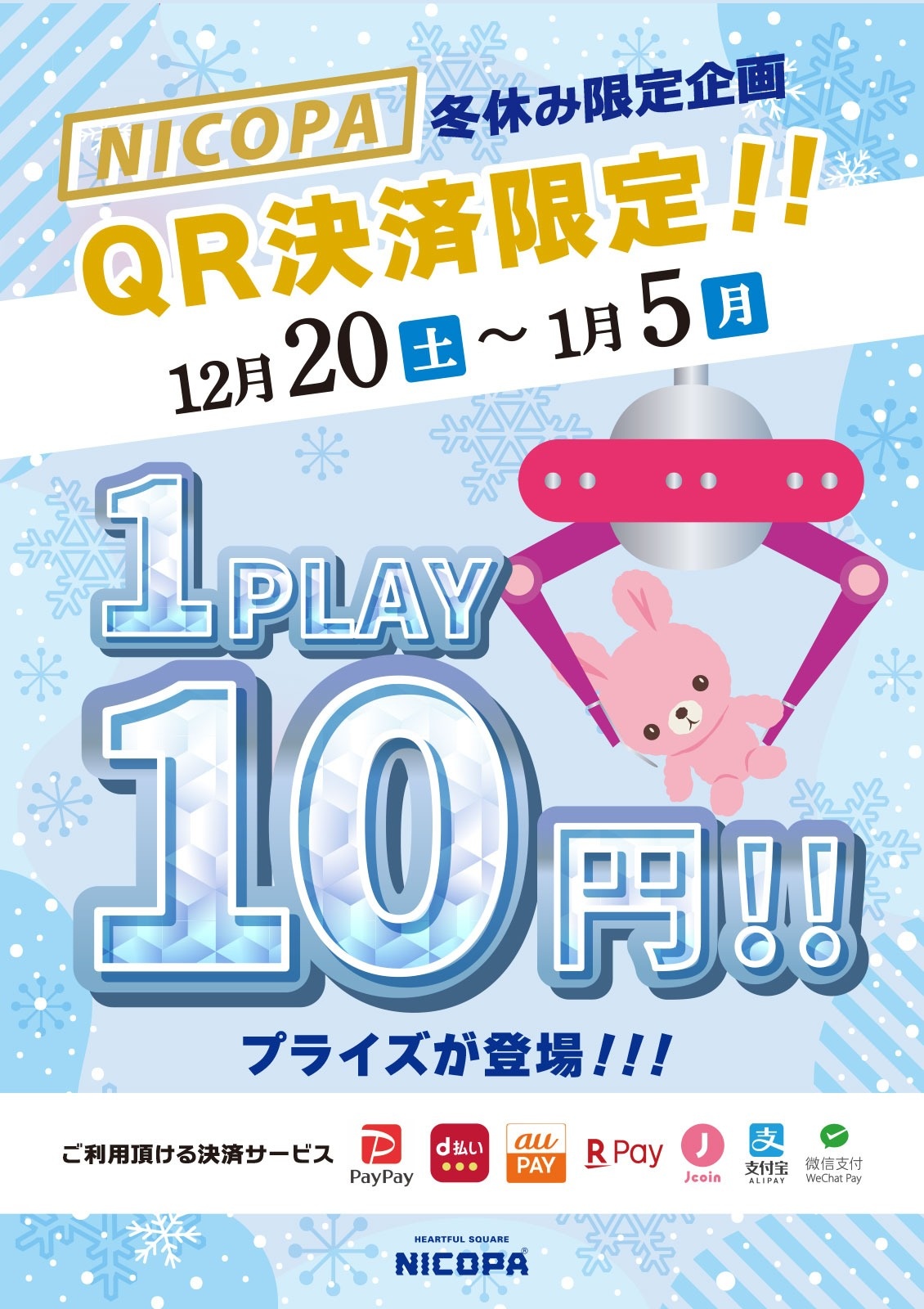 【NICOPA】QR決済限定!! 1PLAY10円プライズが登場!!
