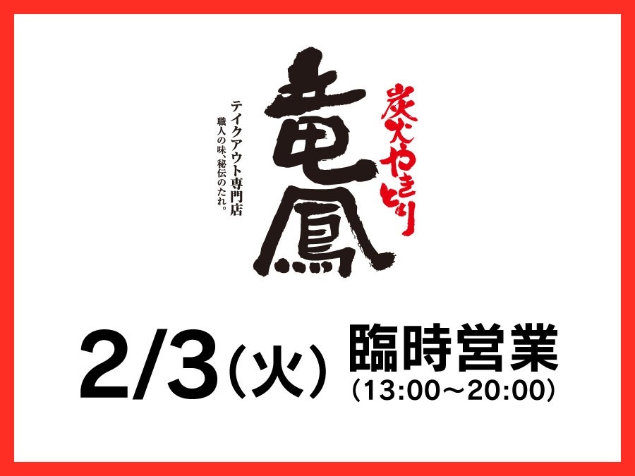 【炭火やきとり竜鳳 】臨時営業のお知らせ