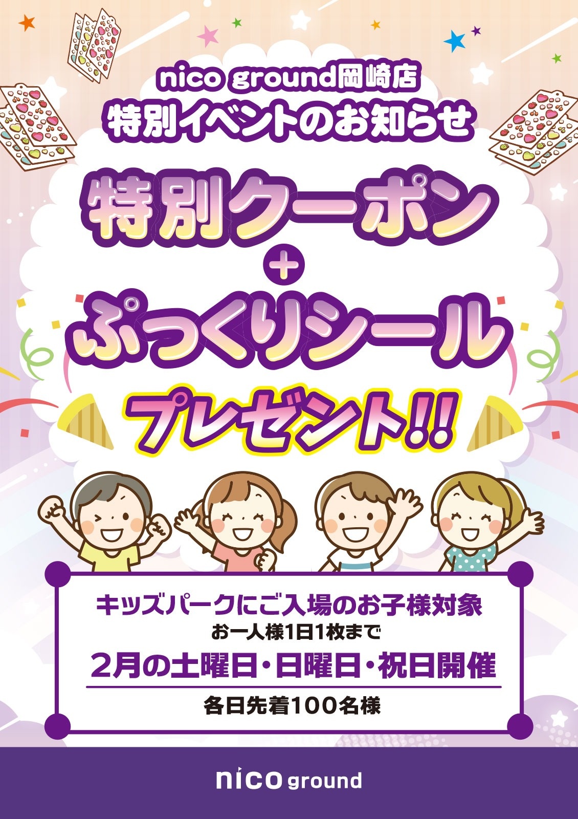 【NICOPA】キッズパークご入場のお子様に、特別クーポン+ぷっくりシールプレゼント!!