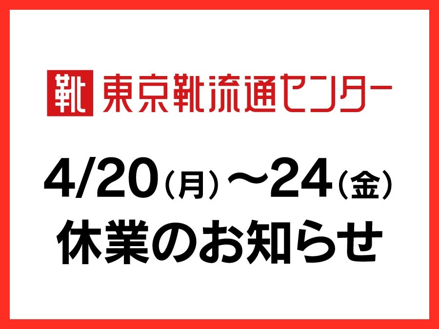 東京靴流通センターは改装に伴う工事のため4月20日(月)〜4月24(金)の期間中は休業させていただきます。